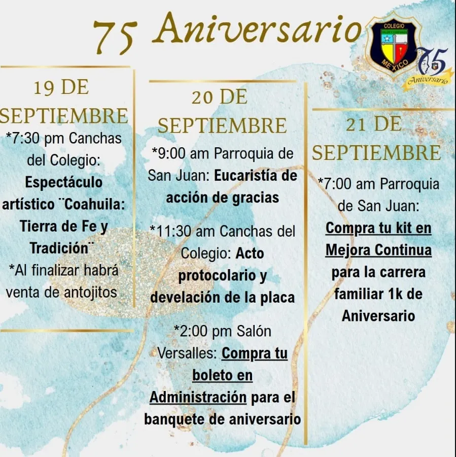 Piedras Negras, Coahuila; 19 de septiembre de 2025.- Mediante la presentación artística que lleva por nombre “Coahuila, Tierra de Fe y Tradición” este viernes el Colegio México dio inicio a las celebraciones alusivas a su 75 aniversario de fundación, como parte de un programa de eventos que abarcará todo este fin de semana.