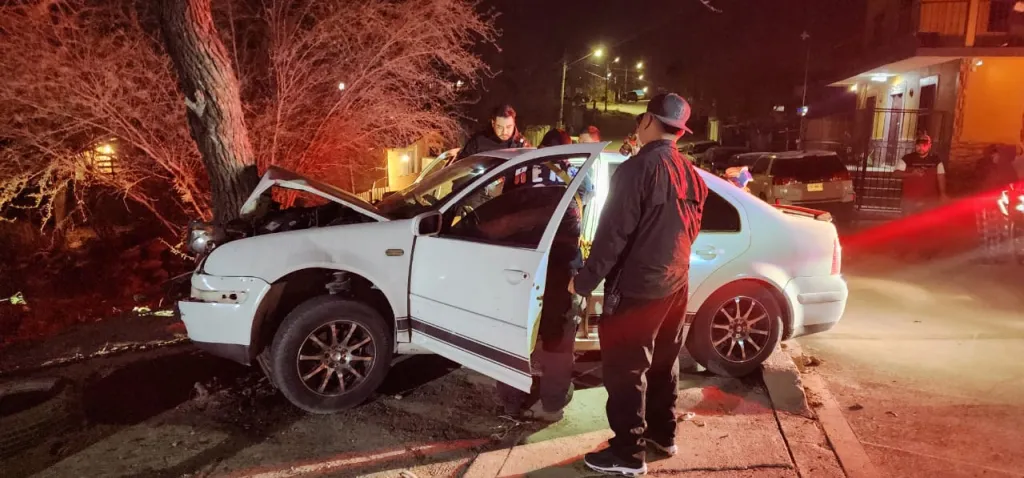 Acuña, Coahuila.- Un aparatoso accidente vial se registró durante la madrugada de este sábado en la colonia Gámez Sumarán, luego de que un automóvil se impactara contra un árbol, dejando como saldo a una joven lesionada y daños materiales; el conductor presuntamente manejaba bajo los influjos del alcohol y a exceso de velocidad.